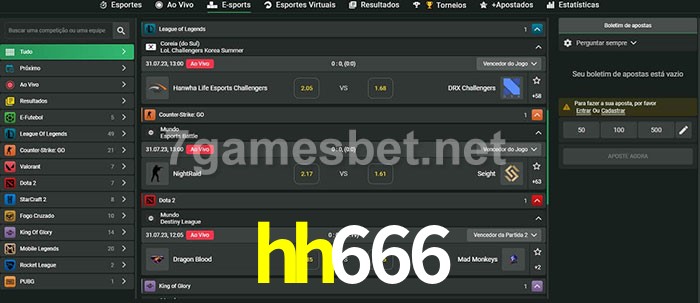 A aposta hh666 oferece aos jogadores a experiência mais conveniente de apostas em eSports!